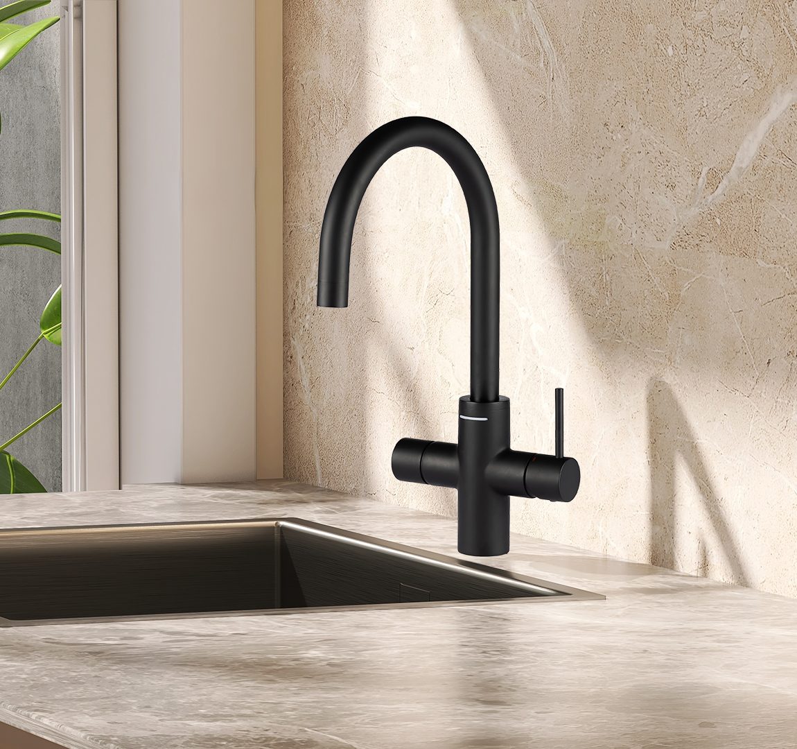 מים רותחים, מים מסוננים קרים או פושרים, מים מוגזים ומי ברז לשטיפת כלים, מברז מעוצב אחד בשיא הנוחות